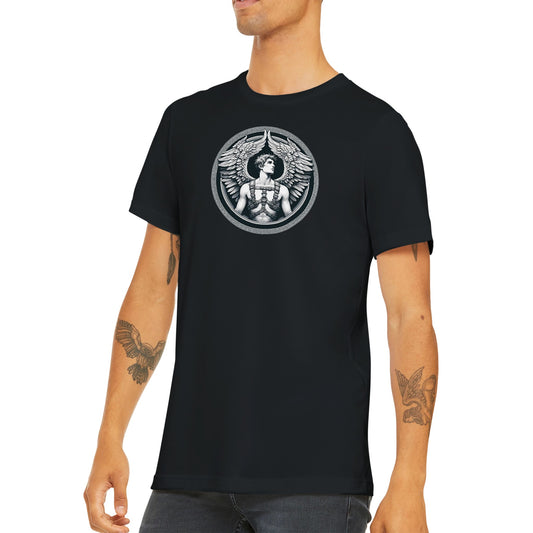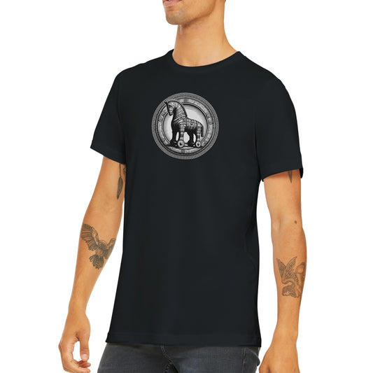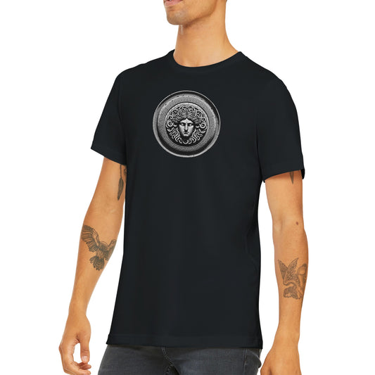 Aegies shield embossed with Socrates vs Plato T-Shirt